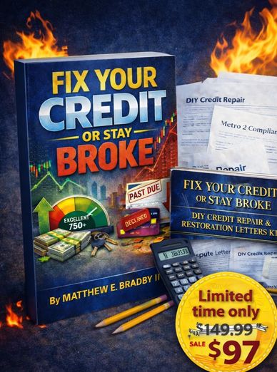 The Fix Your Credit Or Stay Broke DIY Credit Repair & Credit Restoration Letter Kit gives you the exact step-by-step system to dispute negative items the right way — legally, strategically, and professionally