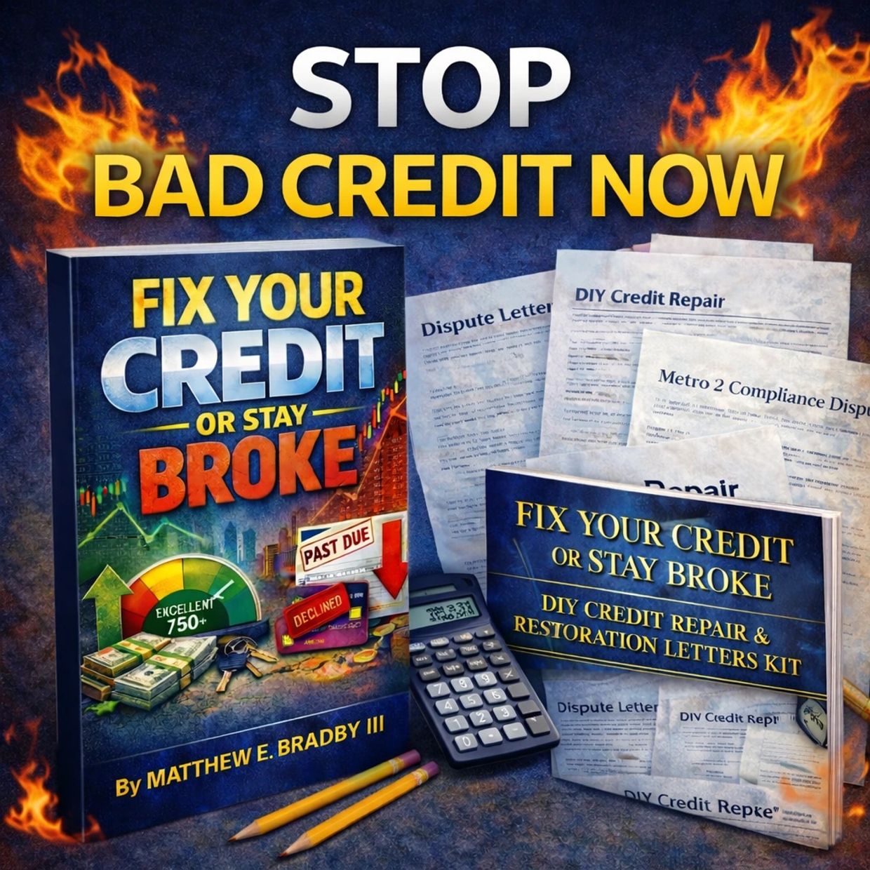 The Fix Your Credit Or Stay Broke DIY Credit Repair & Credit Restoration Letter Kit gives you the exact step-by-step system to dispute negative items the right way — legally, strategically, and professionally.